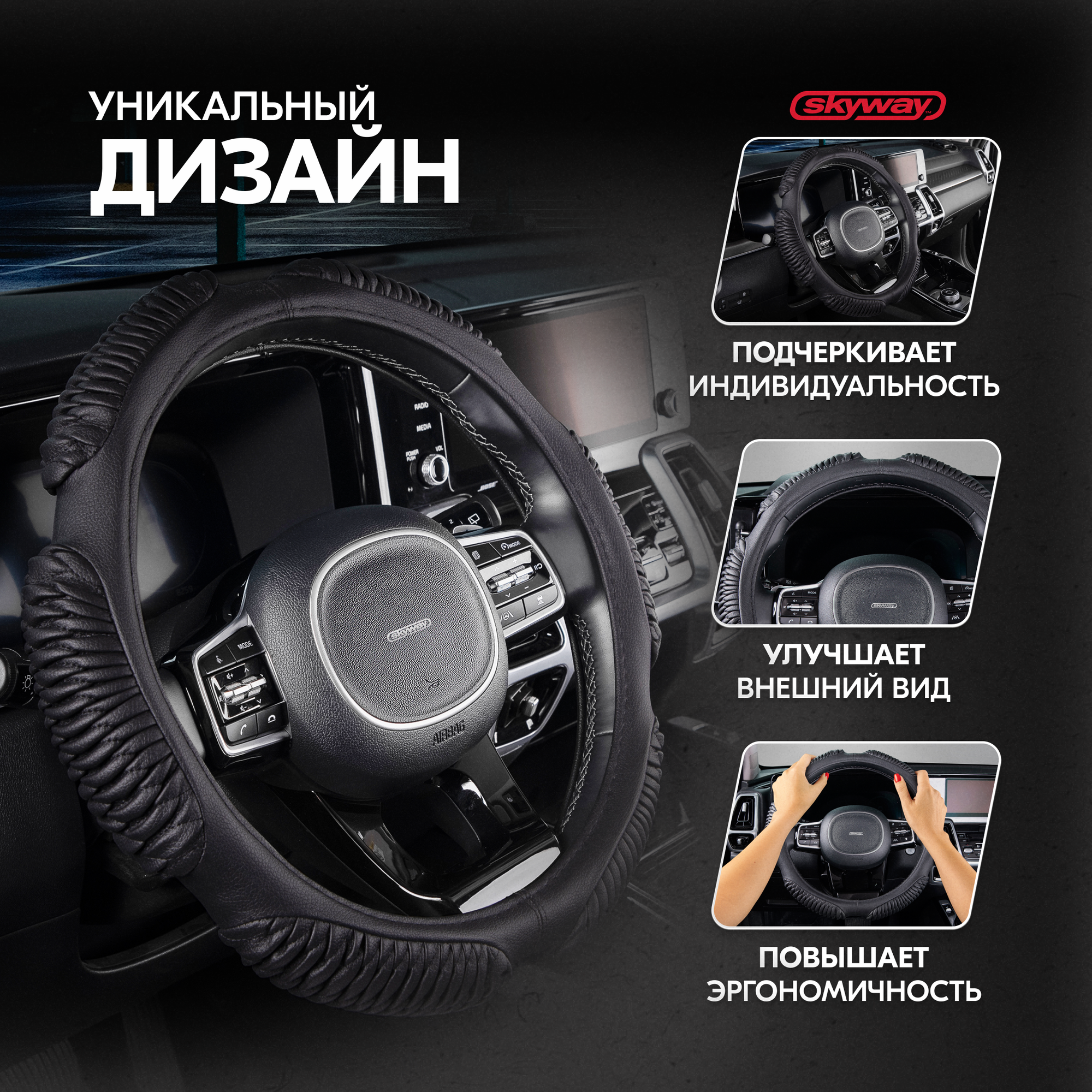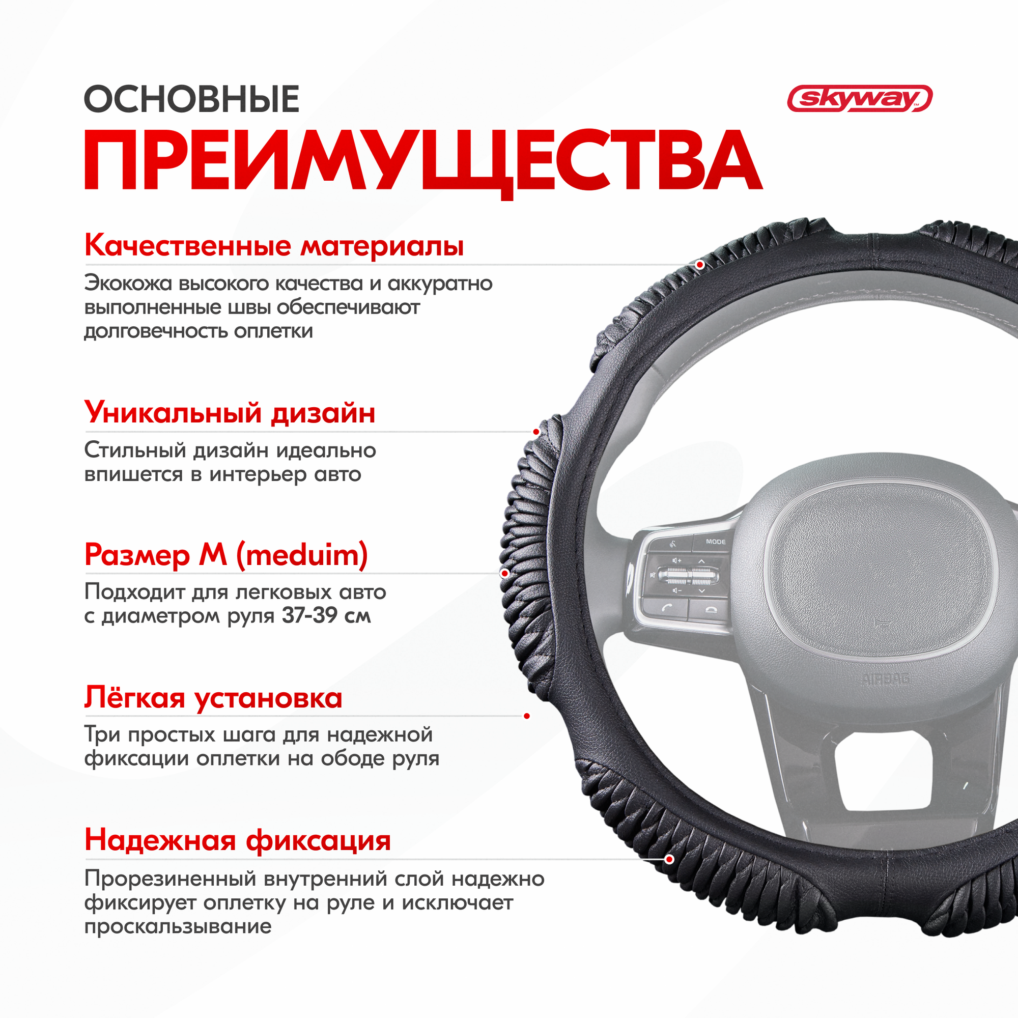 СохранитьSKYWAY S01102223 Оплетка руля M Skyway Eco кожа (6 подушечек) рельефная черная интересное: