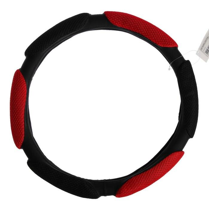 Оплетка руля TORSO Автомобильная, анатомическая, 6 подушек, 38 см, черно-красная