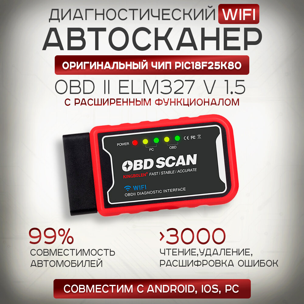 Мультимарочный сканер OBD SCAN KINGBOLEN читает ВСЕ марки версия 1.5 на 100% оригинальном чипе PIC18F25K80 Wi-Fi, для Android и IOS, Windows интересное: