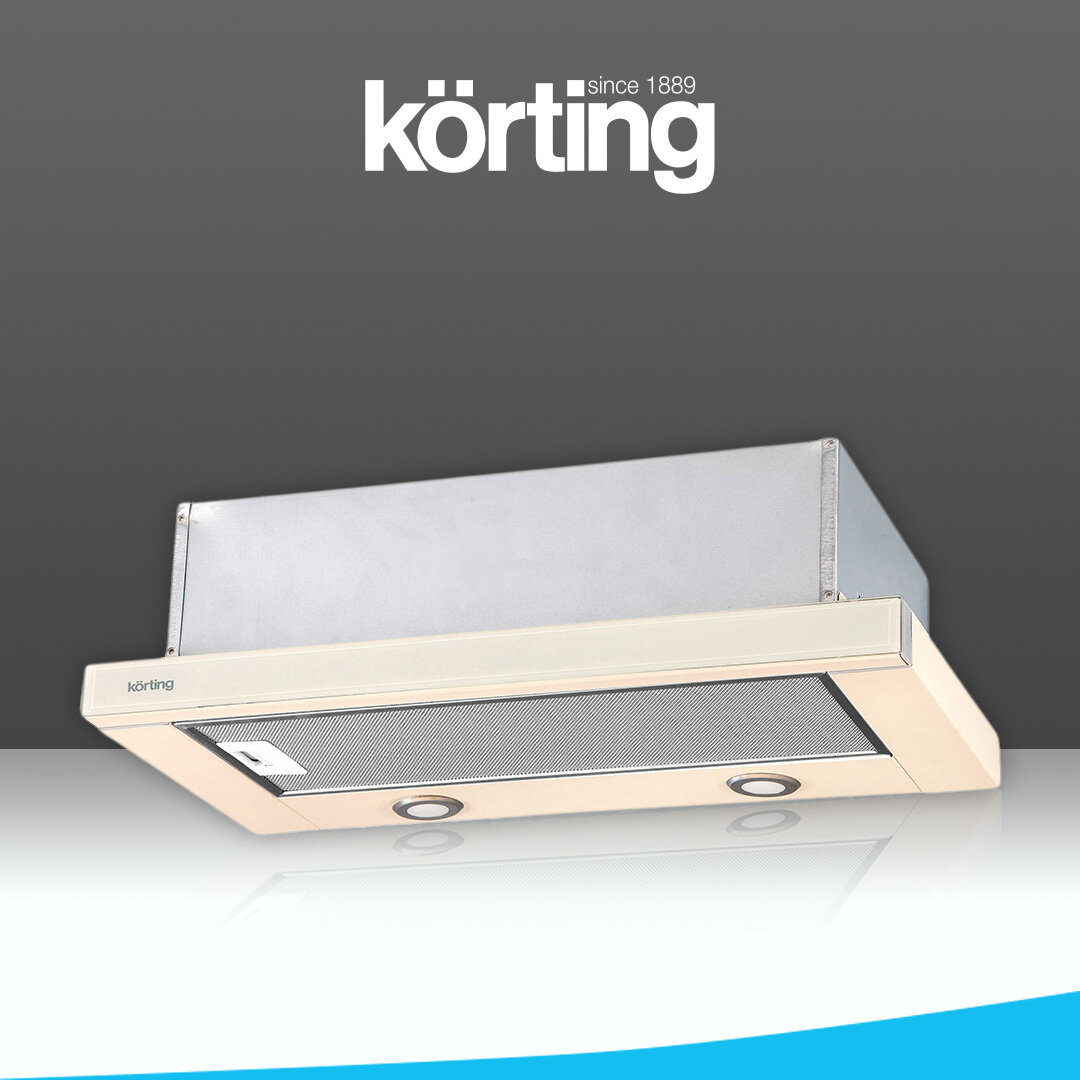 Вытяжки Korting/ "Встраиваемая вытяжка с выдвижным экраном в ретро дизайне,ширина 60 см, 3 режима, механическое управление, 650 м3/ч., алюминиевые жировые фильтры, LED освещениe - 2 лампы, ур.шума 57дб, рейлинг в цвете бронза, цвет - белый