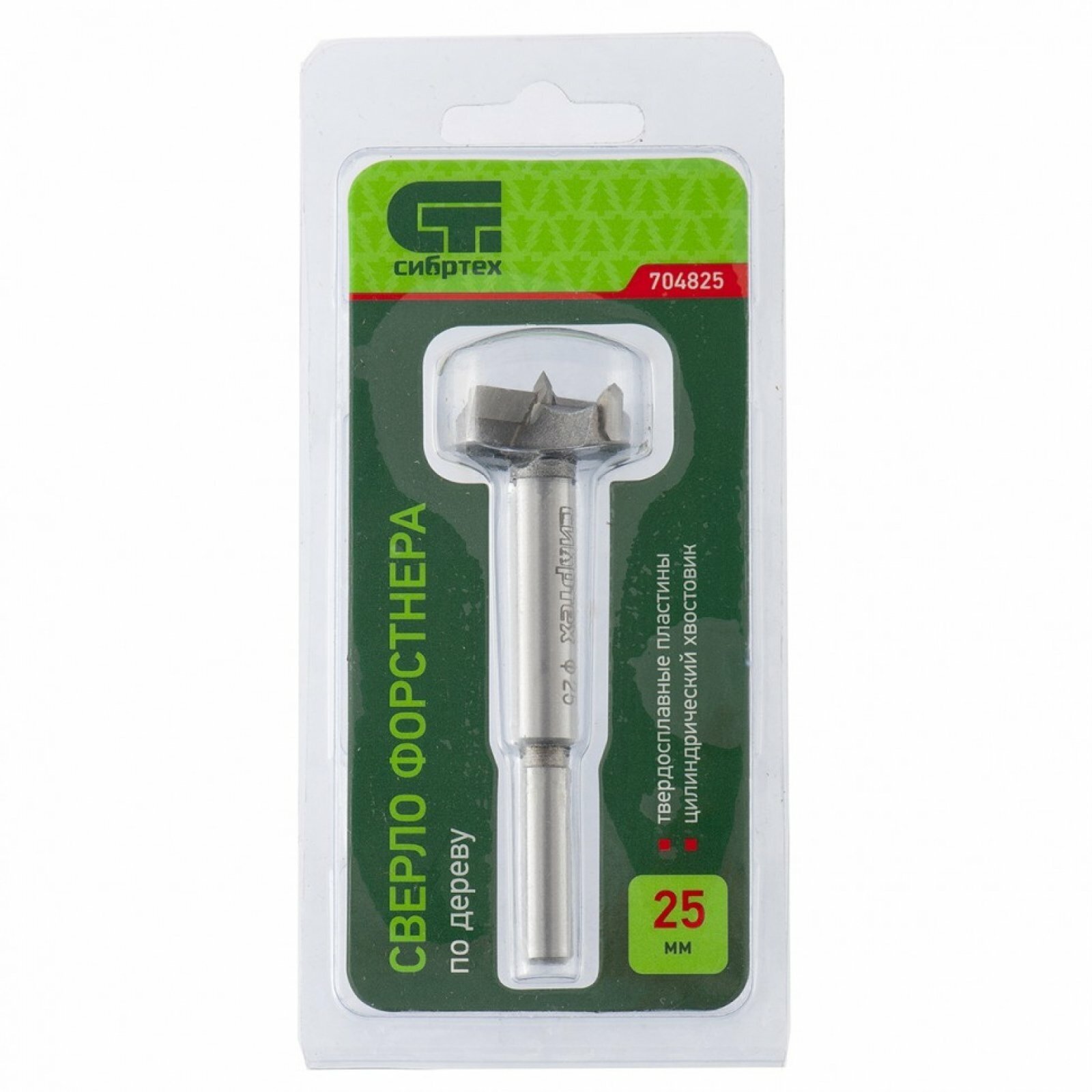 Сверло Форстнера по дереву, 25 мм, цилиндрический хвостовик Сибртех, 704825