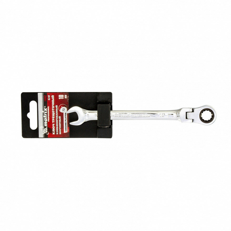 MATRIX Ключ комбинированный трещоточный, 10 мм, CrV, шарнирный, зеркальный хром Matrix Professional, ( 14862 ) интересное: