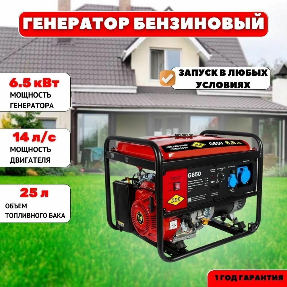 Генератор бензиновый DDE G650 (1ф 6,0/6,5 кВт бак 25 л 81 кг дв-ль 14 л.с.)