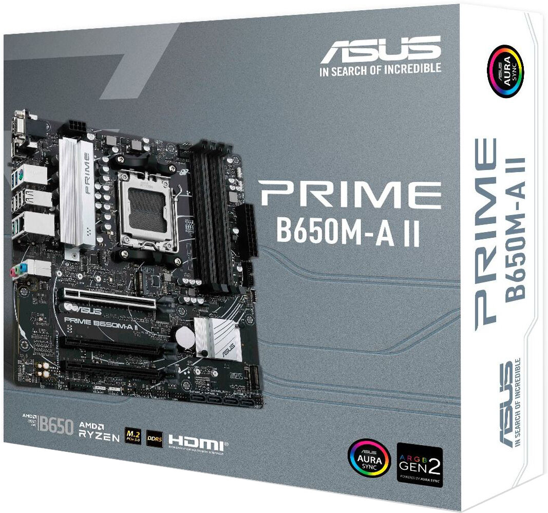 Купить ASUS PRIME B650M-A II-CSM, Socket AM5, B650, 4*DDR5, HDMI+DP+VGA, 4xSATA3 + RAID, M2, Audio, Gb LAN, USB 3.2, USB 2.0, mATX; 90MB1EH0-M0EAY0