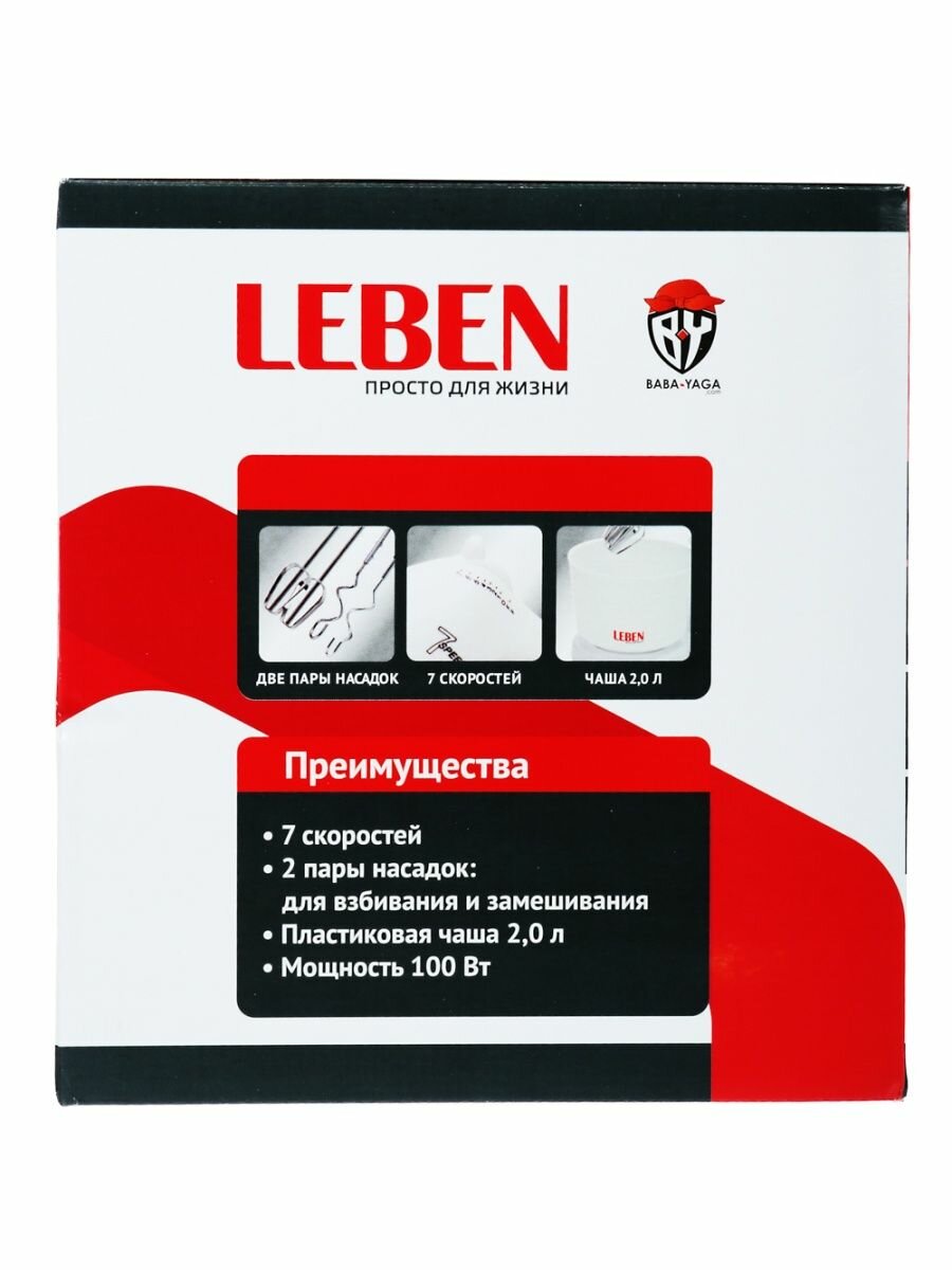 LEBEN Миксер кухонный 100Вт, 7 скоростей, 2 пары насадок, пластиковая чаша 2л