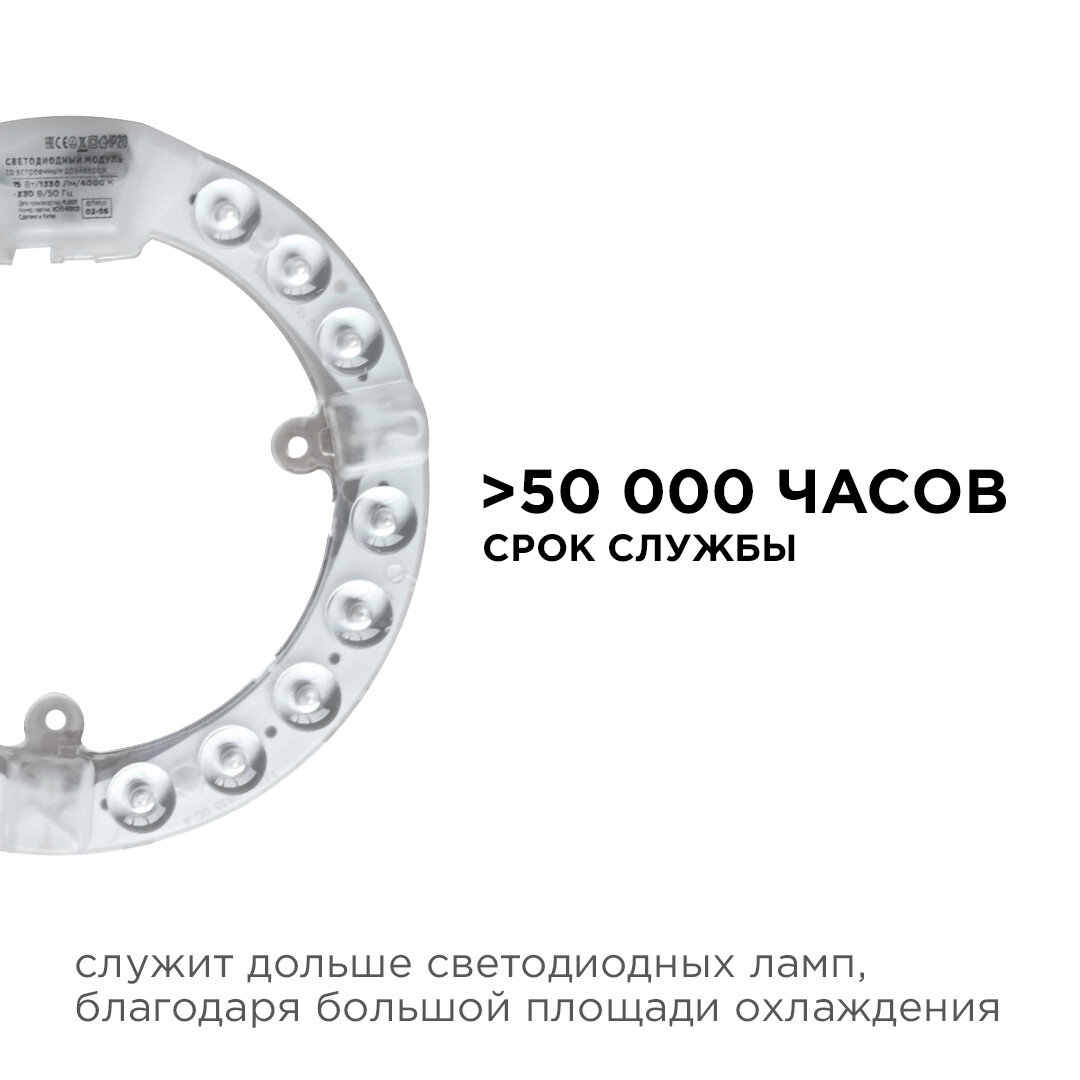Модуль светодиодный Apeyron 02-56 со встроенным драйвером, напряжение 220В, обладает белым цветом свечения 4000K, излучает световой поток равный 1350Лм/д / smd2835 / 15Вт / гарантия 1 год