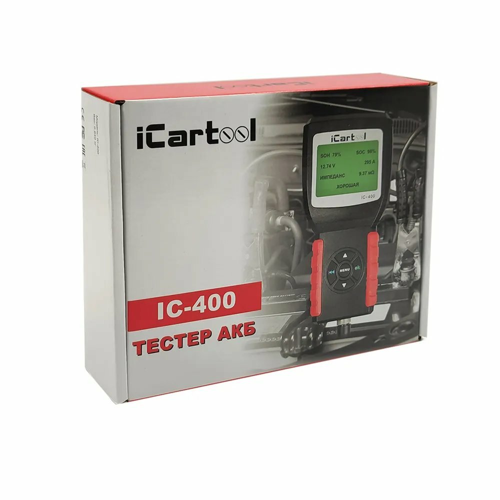 Тестер аккумуляторных батарей iCartool IC-400, АКБ 12/24В, до 2000А, тест системы пуска и зарядки, вольтметр, съемные кабеля