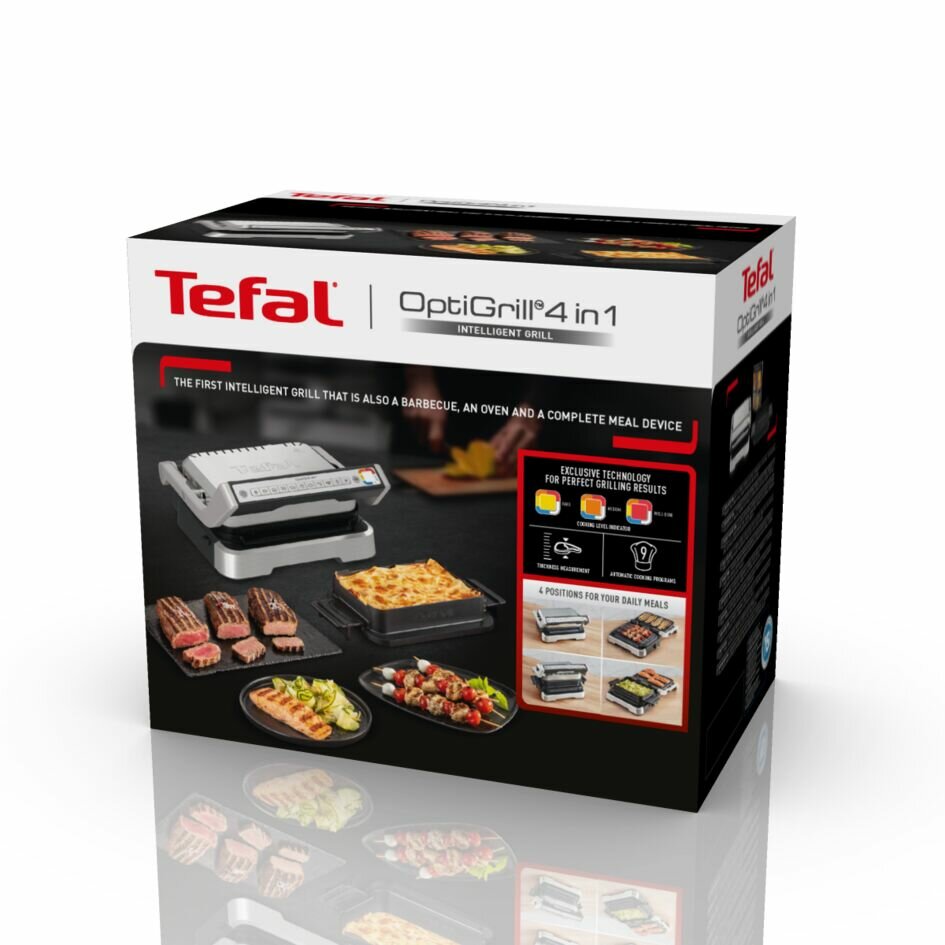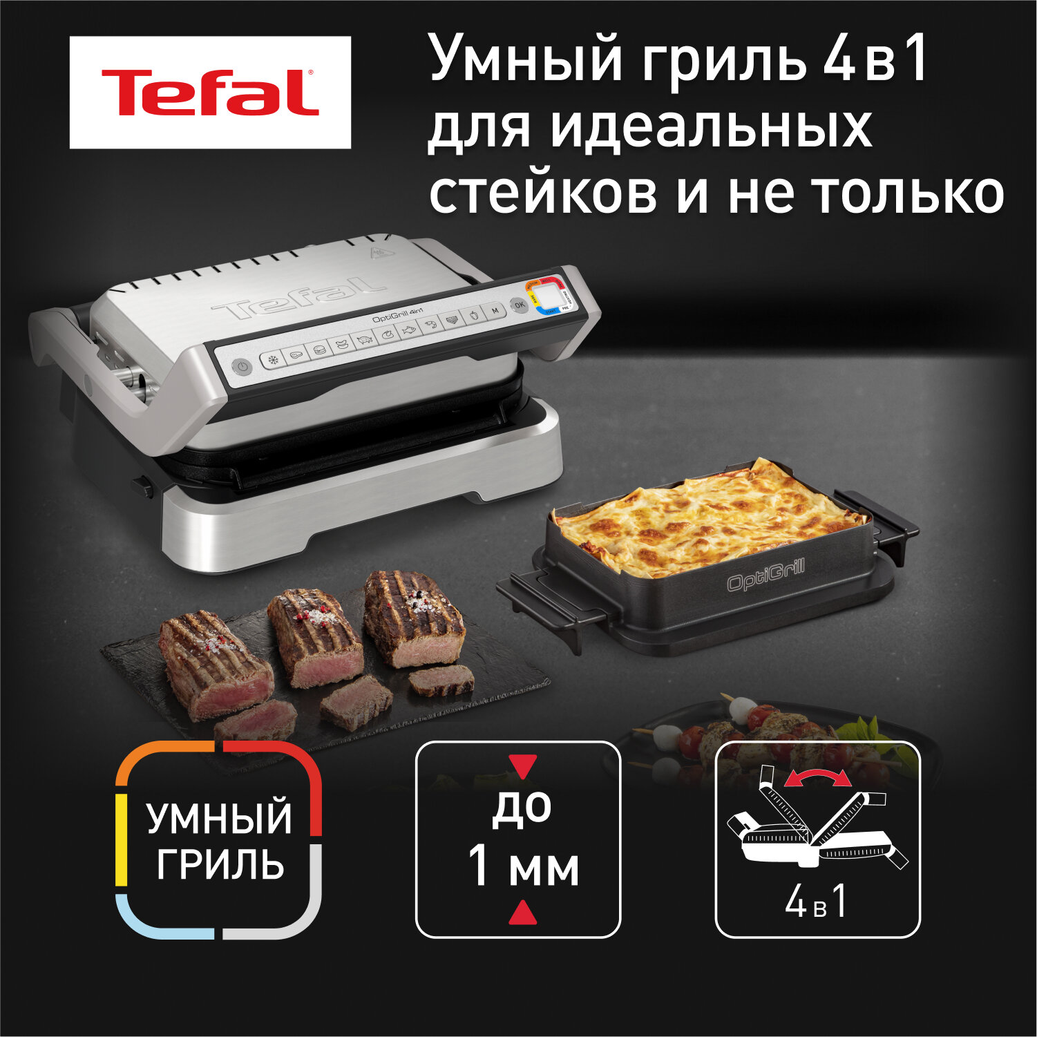 Умный электрогриль Tefal Optigrill 4 в 1 GC774D30 c 9 программами и насадкой для запекания, стальной/черный