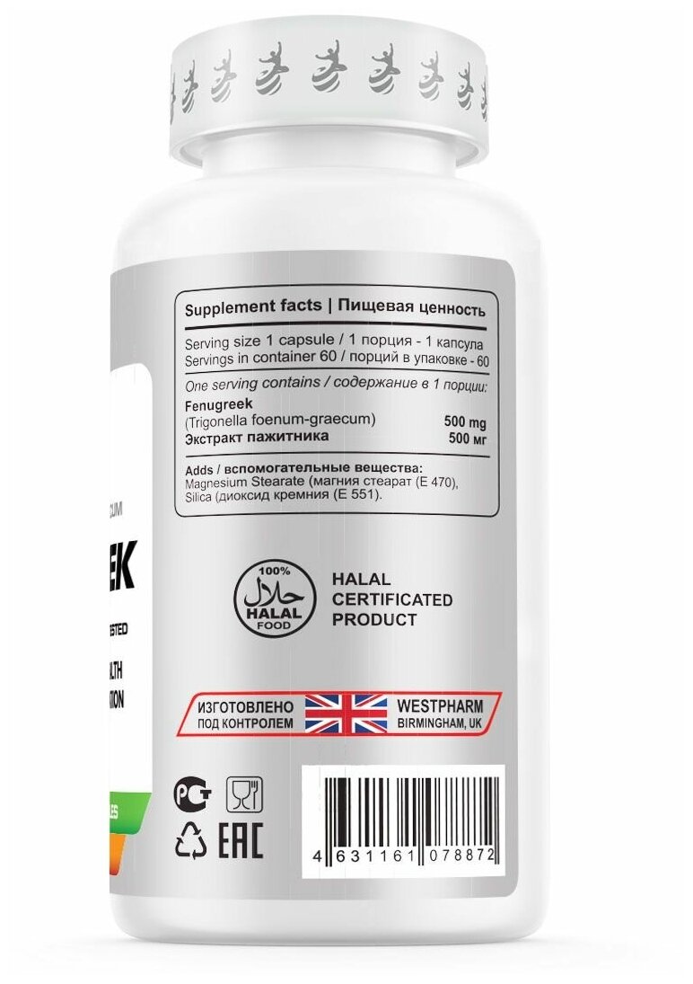 WestPharm / Vegan line / Fenugreek / Фенугрек / Тестобустер / 60 капсул интересное: