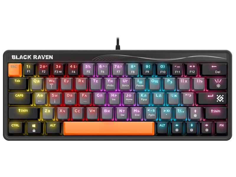 Клавиатура USB игровая механическая Defender Black Raven GK-417 RU, 3цвета, радужная, 63 кнопки, черный, 45414 интересное: