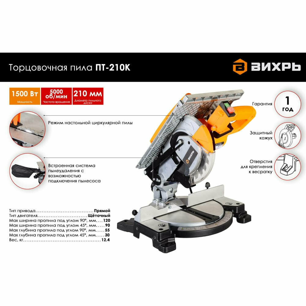 Торцовочная пила ПТ-210К Вихрь, шт интересное: