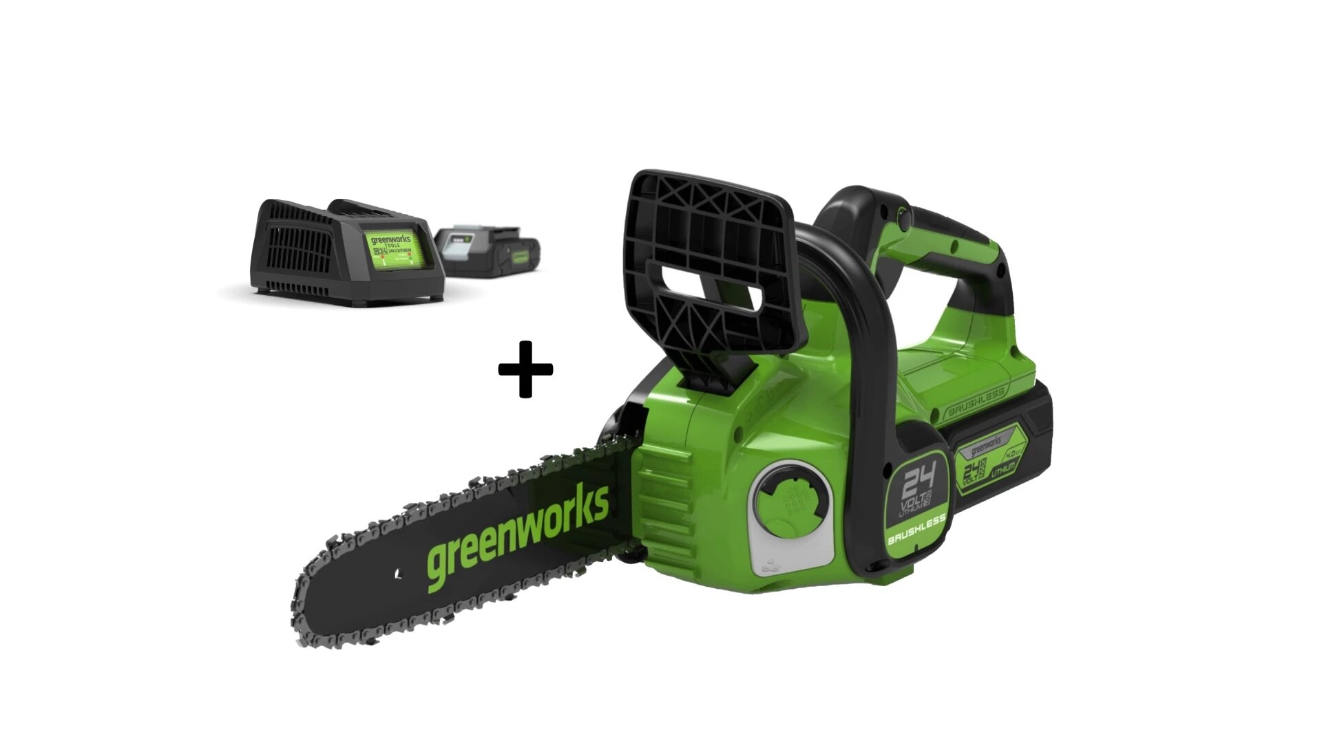 Цепная пила аккумуляторная GreenWorks G24CS25K2, 24V, 25см, c АКБ 2Ач и ЗУ (2007707UA) интересное: