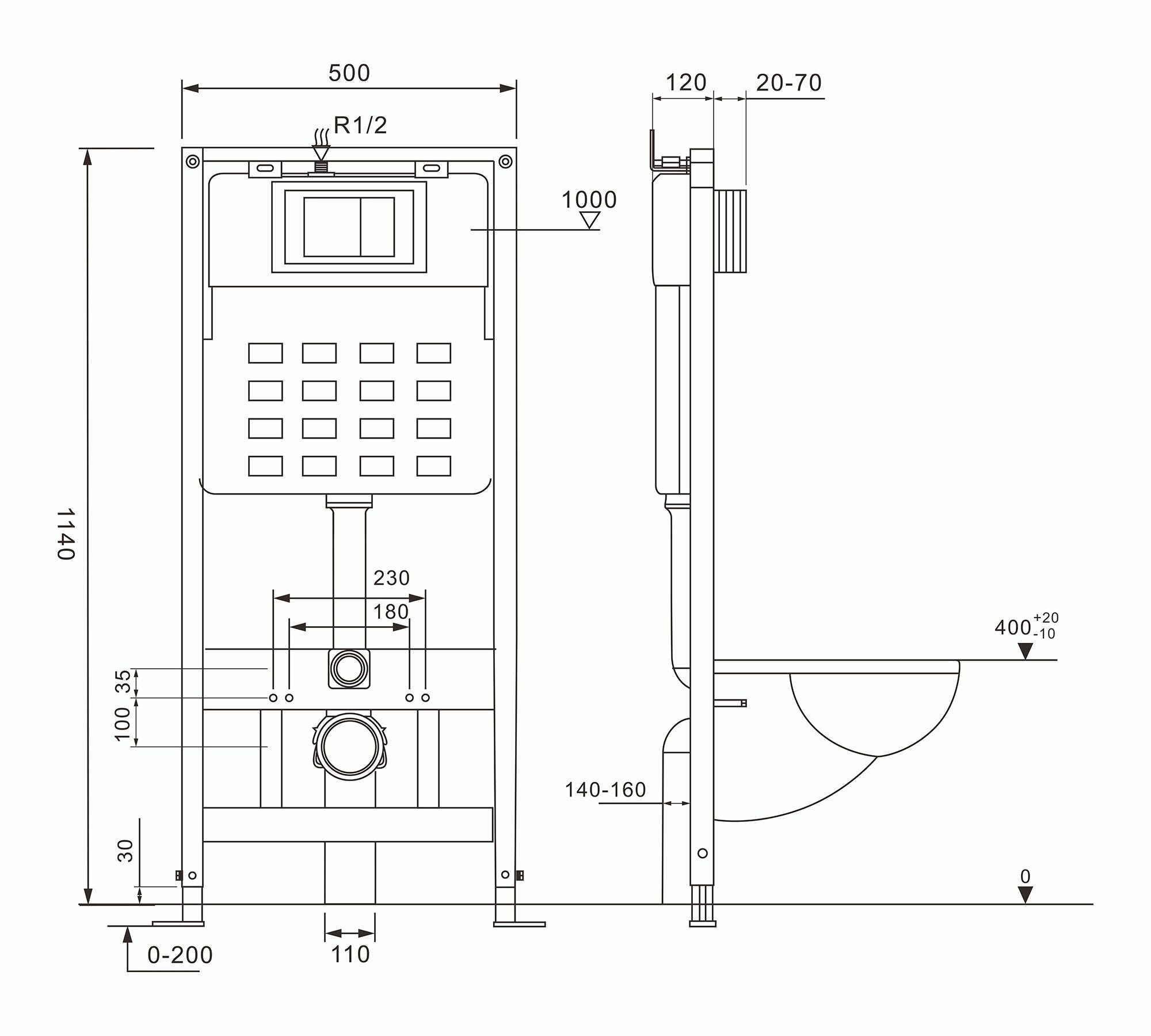 Vincea Инсталляция для унитаза Vincea VIS-601, 500x1112