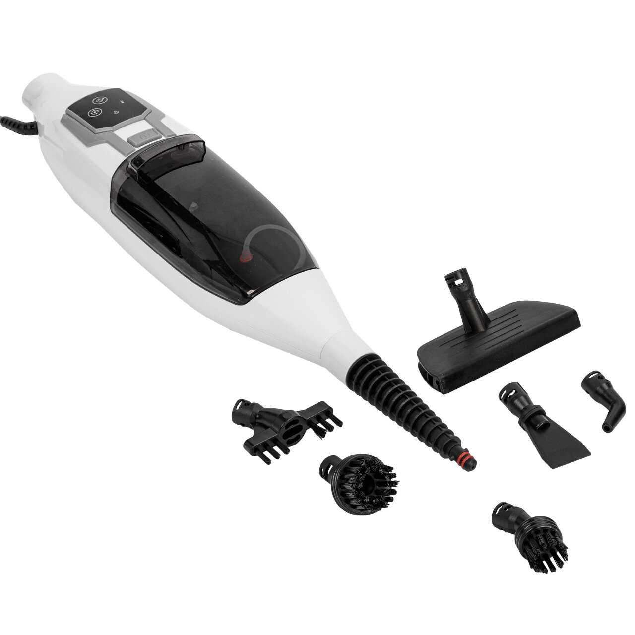 | Дополнительная информация | Обтяжка из махровой ткани (1 шт) Насадка-скребок (1 шт) Широкая щетка-насадка с полимерной щетиной (1 шт) Насадка для мытья окон/дверей (1 шт) Угловая насадка (1 шт) Малая круглая щетка-насадка с полимерной щетиной (1 шт) Большая круглая щетка-насадка с полимерной щетиной (1 шт) Точечное сопло (1 шт) Мерный стакан (1 шт) Рукоятка (1 шт) Махровая салфетка (2 шт) |