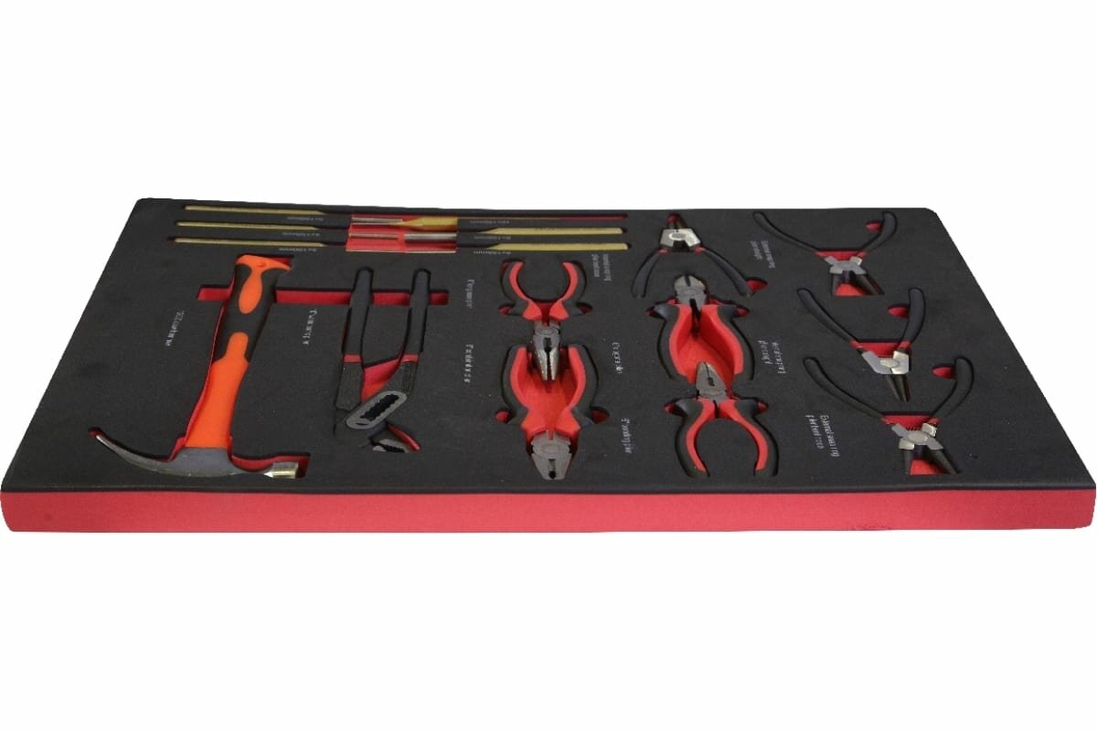 | Подробная комплектация | Пассатижи с круглыми губками – 4 шт Бокорезы – 1 шт Комбинированные пассатижи – 1 шт Удлиненные пассатижи – 1 шт Прямые пассатижи – 1 шт Молоток с захватом – 1шт Выколотки - 6 шт: 3*150 мм, 4*150 мм, 5*150 мм, 6*150 мм, 8*150 мм, 10*150 мм Переставные клещи 10" – 1 шт |