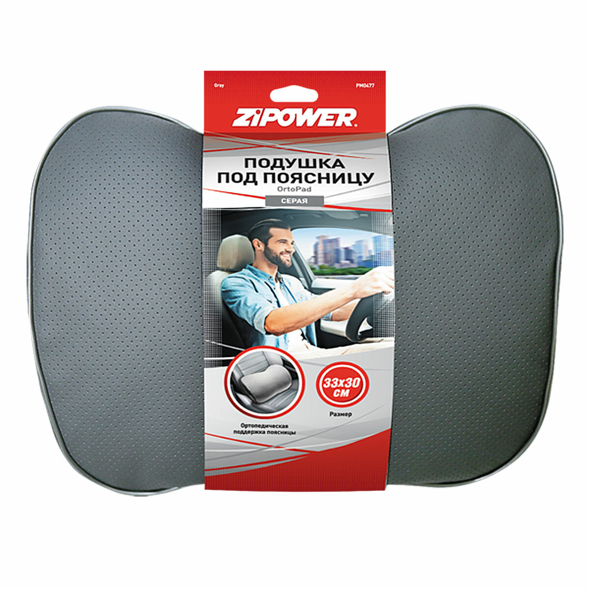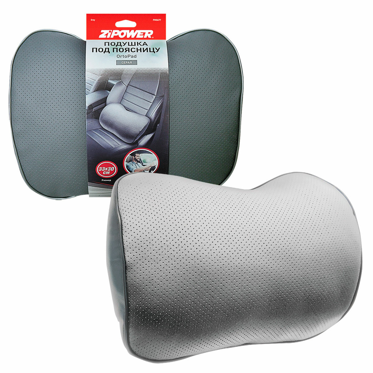 PM0477 ZIPOWER PM0477_подушка! под поясницу, экокожа, серая\
