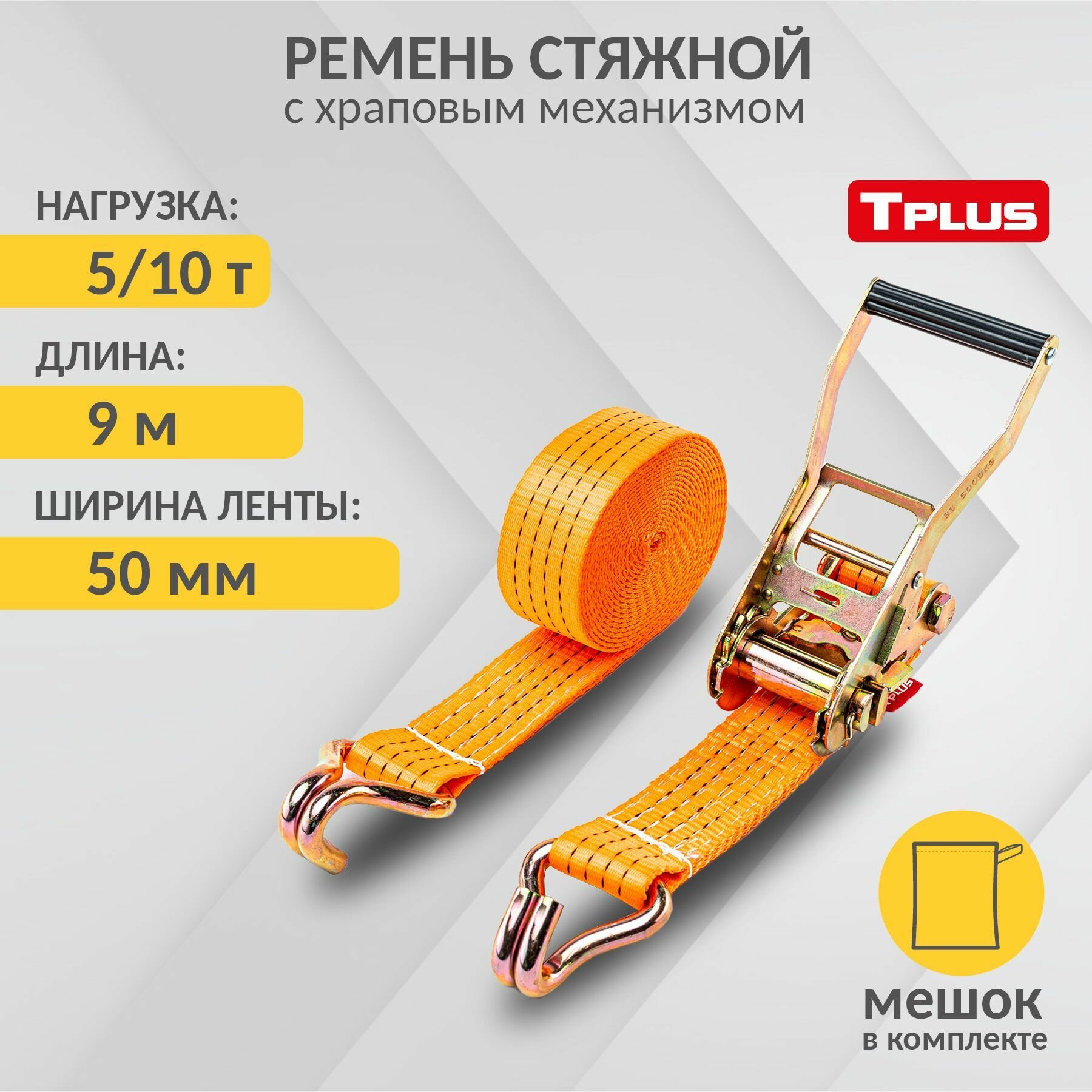 Ремень стяжной Tplus 5-10 т 9 м (T000992) интересное: