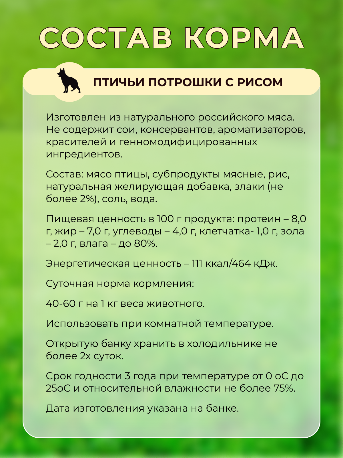 Консервы для собак Птичьи потрошки с рисом 410г 20 шт