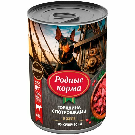 родные корма консервы для собак говядина с потрошками в желе по купечески 66043, 0,410 кг, 34185