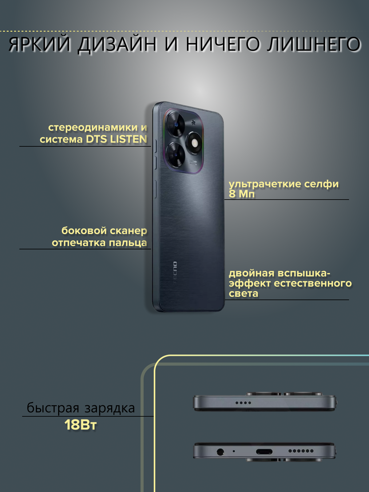 Смартфон TECNO Spark Go 2024 4/128 ГБ , Dual nano SIM, черный