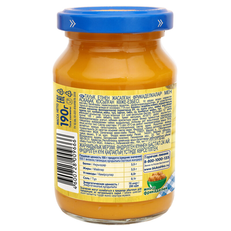 | Отзыв: | Взяли по хорошей цене. Радует большое количество фрикаделек со сладкой тыквой. Ребенок в 1,1 год сам выбирает и несёт именно эту банку. От срока годности остался год |