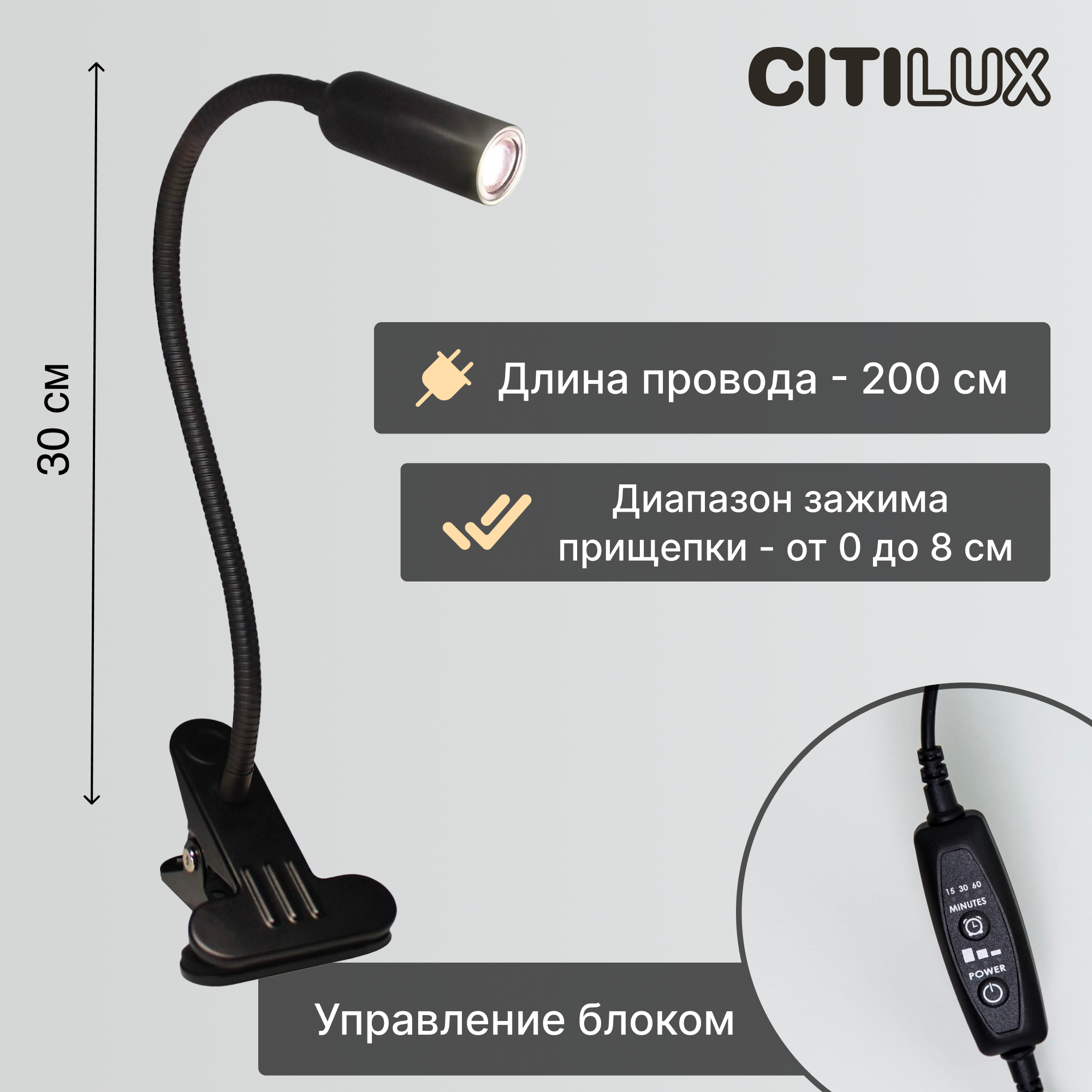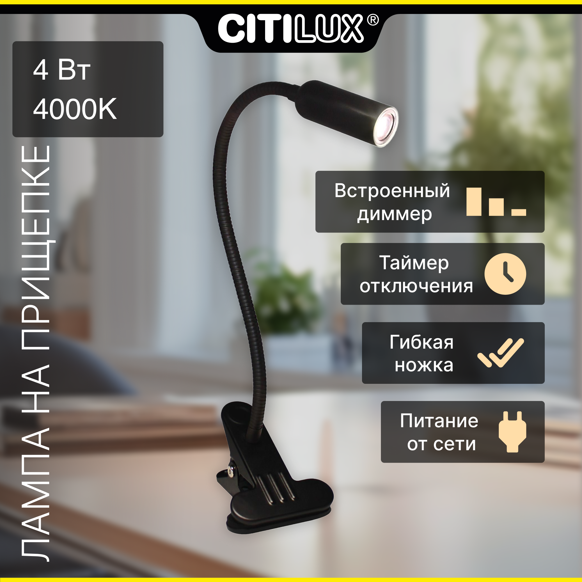 Светильник для чтения на гибкой ножке светодиодная на прищепке Citilux Ньютон CL803061N белый черный интересное: