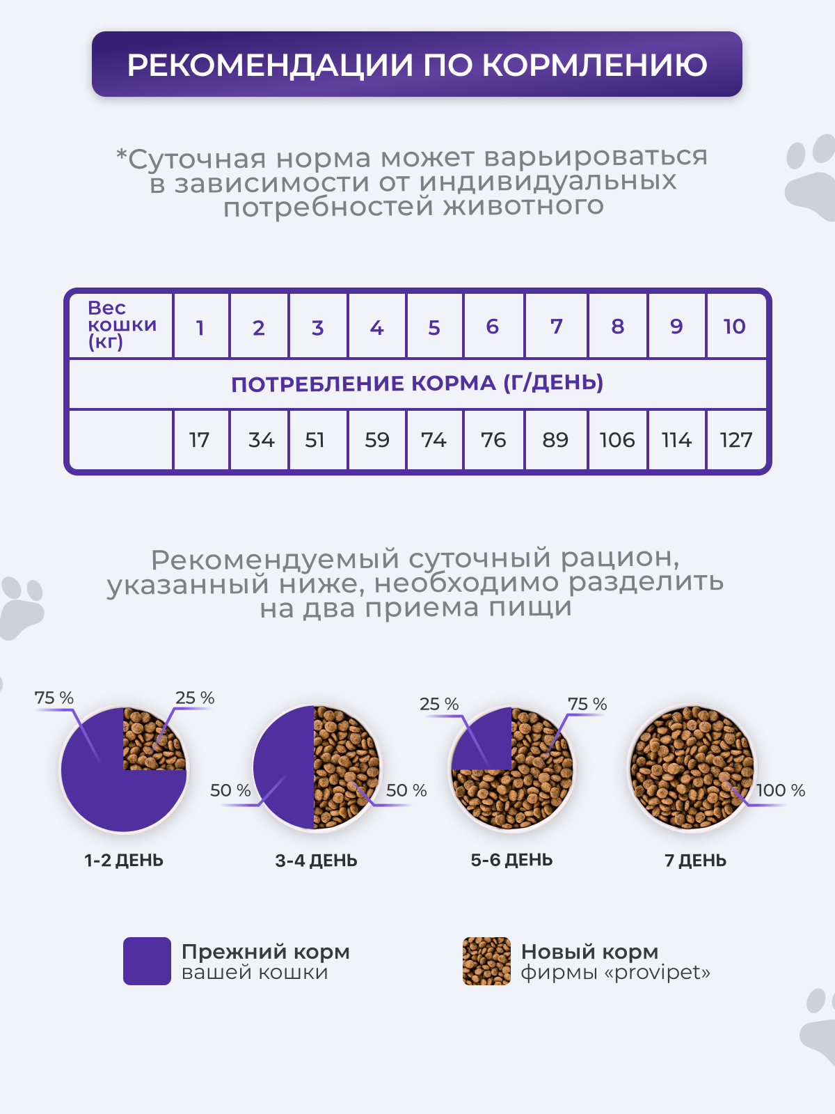 | Возраст животного | взрослые (1-6 лет) / котята (до 1 года) / пожилые (7+) |