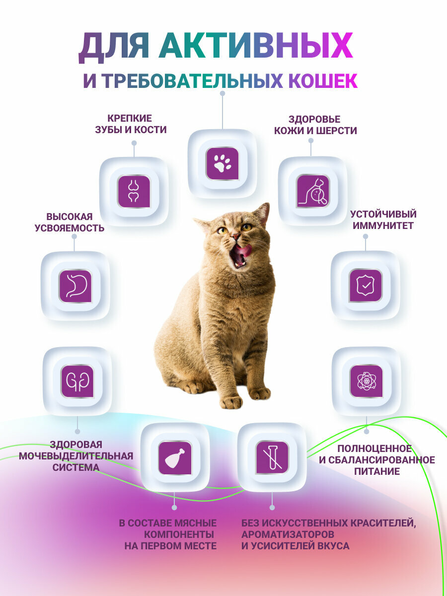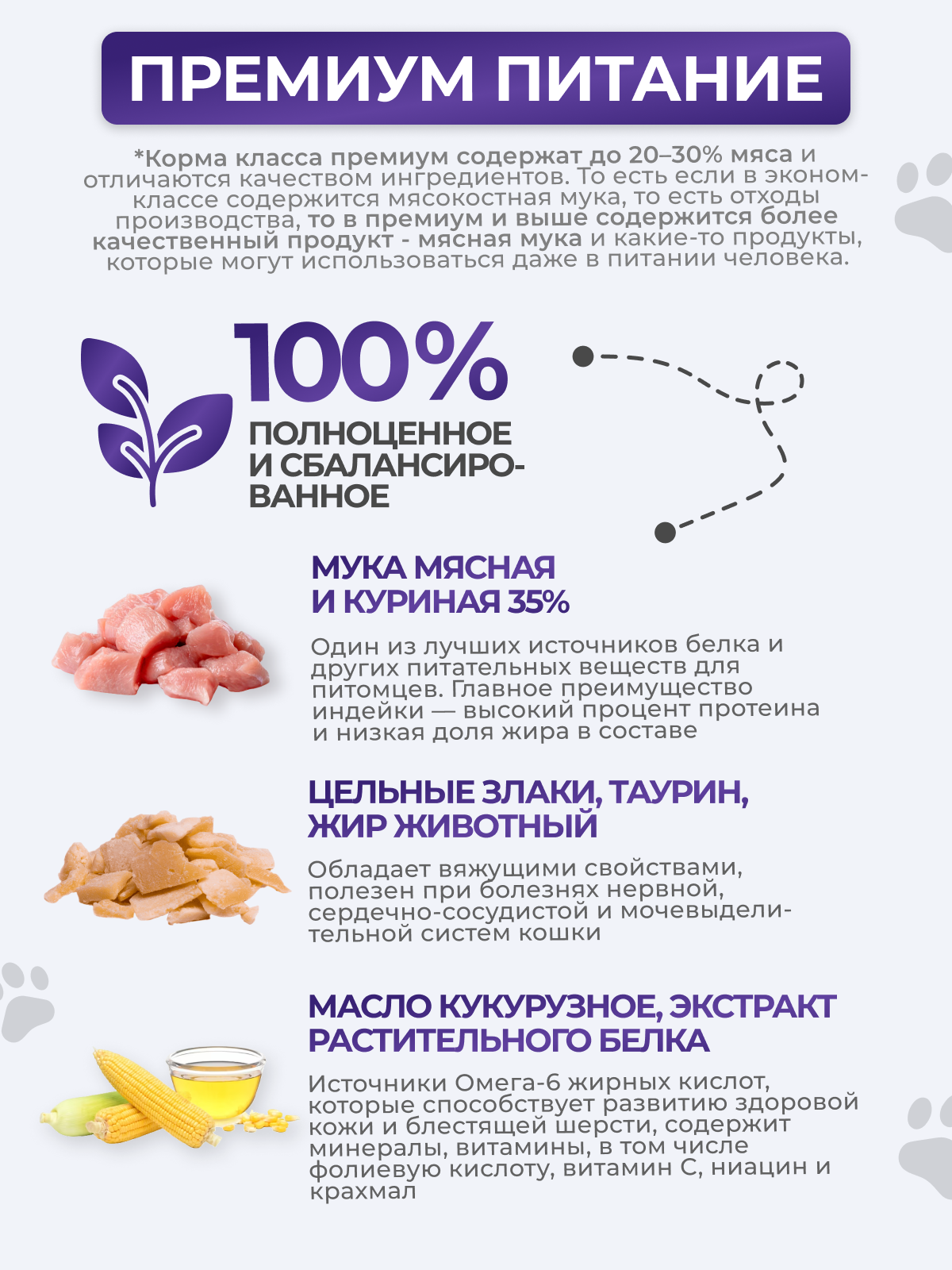 | Особые потребности | для живущих в помещении / для живущих на улице / для здоровья кожи и блеска шерсти / для здоровья костей и суставов / для стерилизованных/кастрированных / при чувствительном пищеварении |