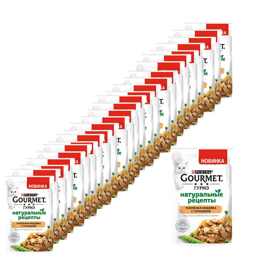 Влажный корм, "Гурме Натуральные рецепты", для взрослых кошек и котов, с индейкой и горохом, 75г 20 шт