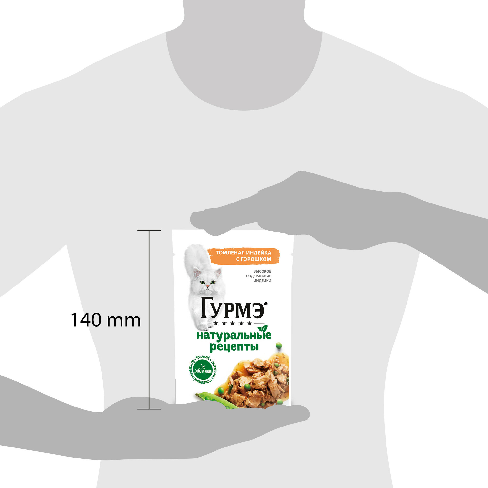 Влажный корм, "Гурме Натуральные рецепты", для взрослых кошек и котов, с индейкой и горохом, 75г 6 шт