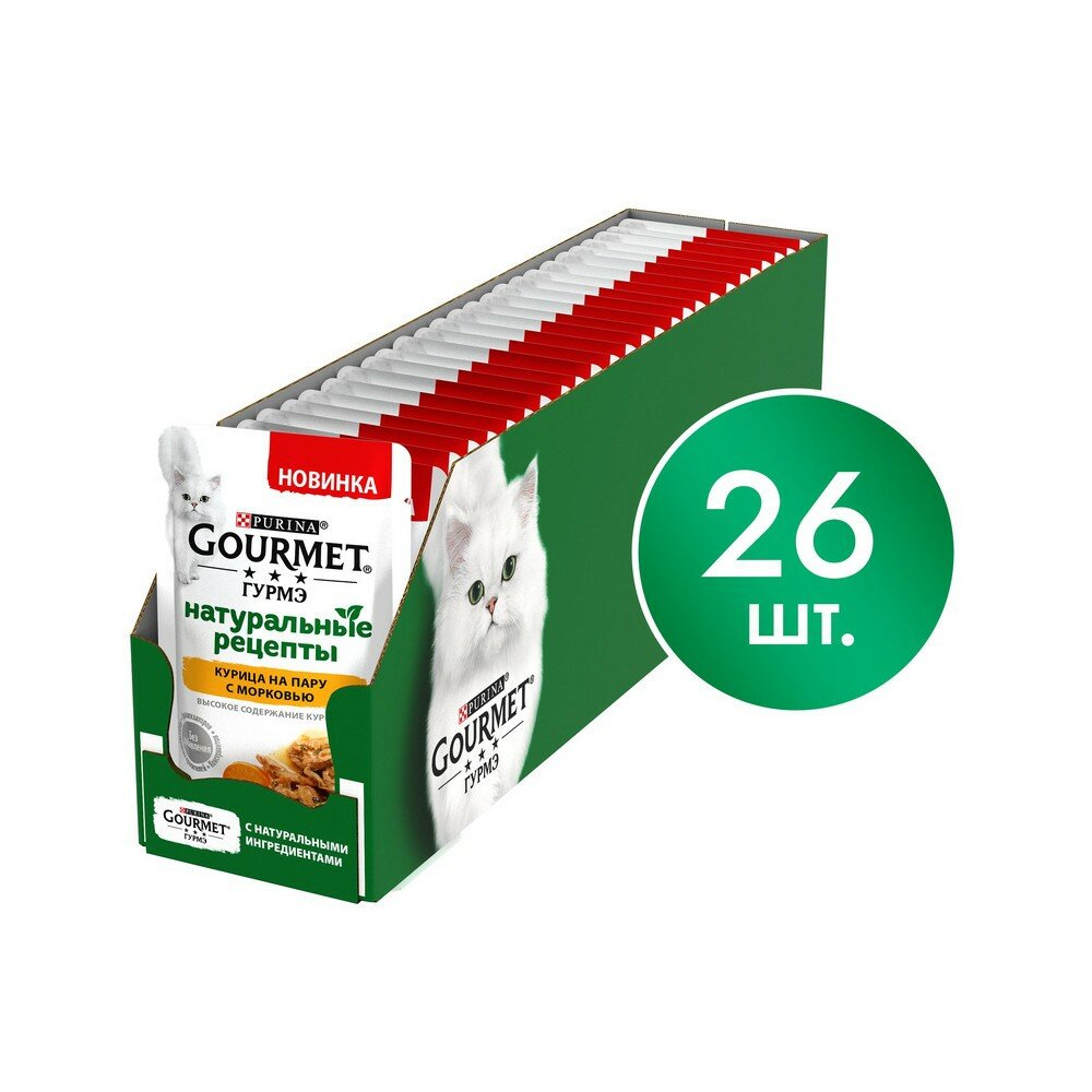 Влажный корм, "Гурме Натуральные рецепты", для взрослых кошек и котов, с индейкой и горохом, 75г 26 шт