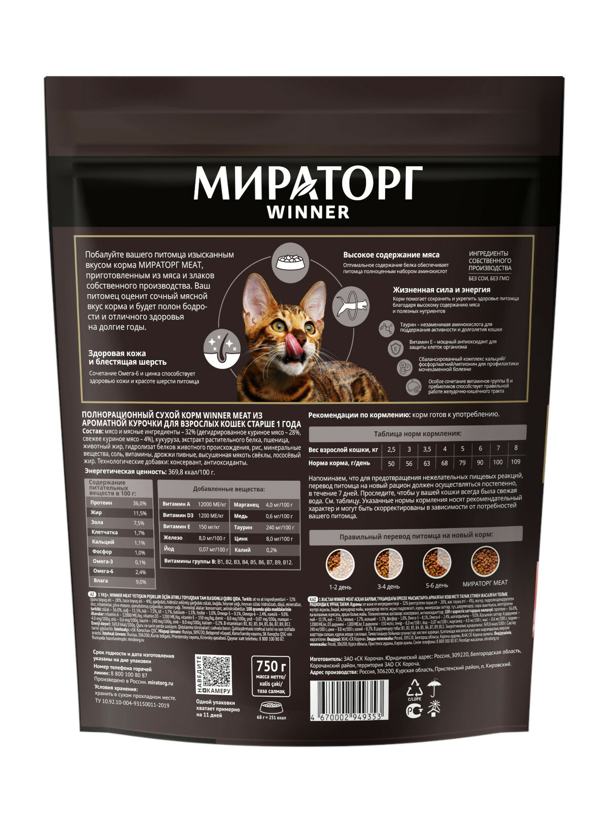 Мираторг WINNER MEAT сухой корм для взрослых кошек, с ароматной курочкой - 750 г