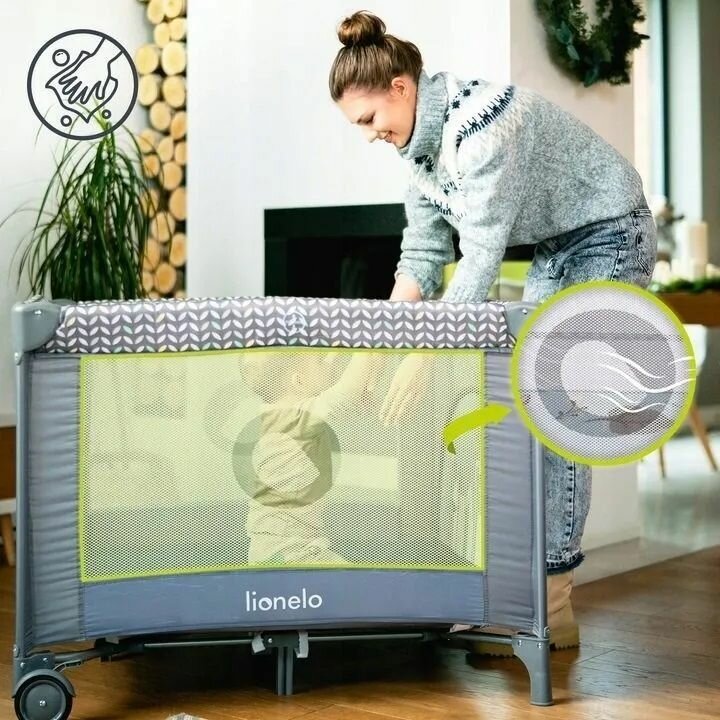 Манеж игровой Lionelo Lene Grey Scandi с боковым лазом