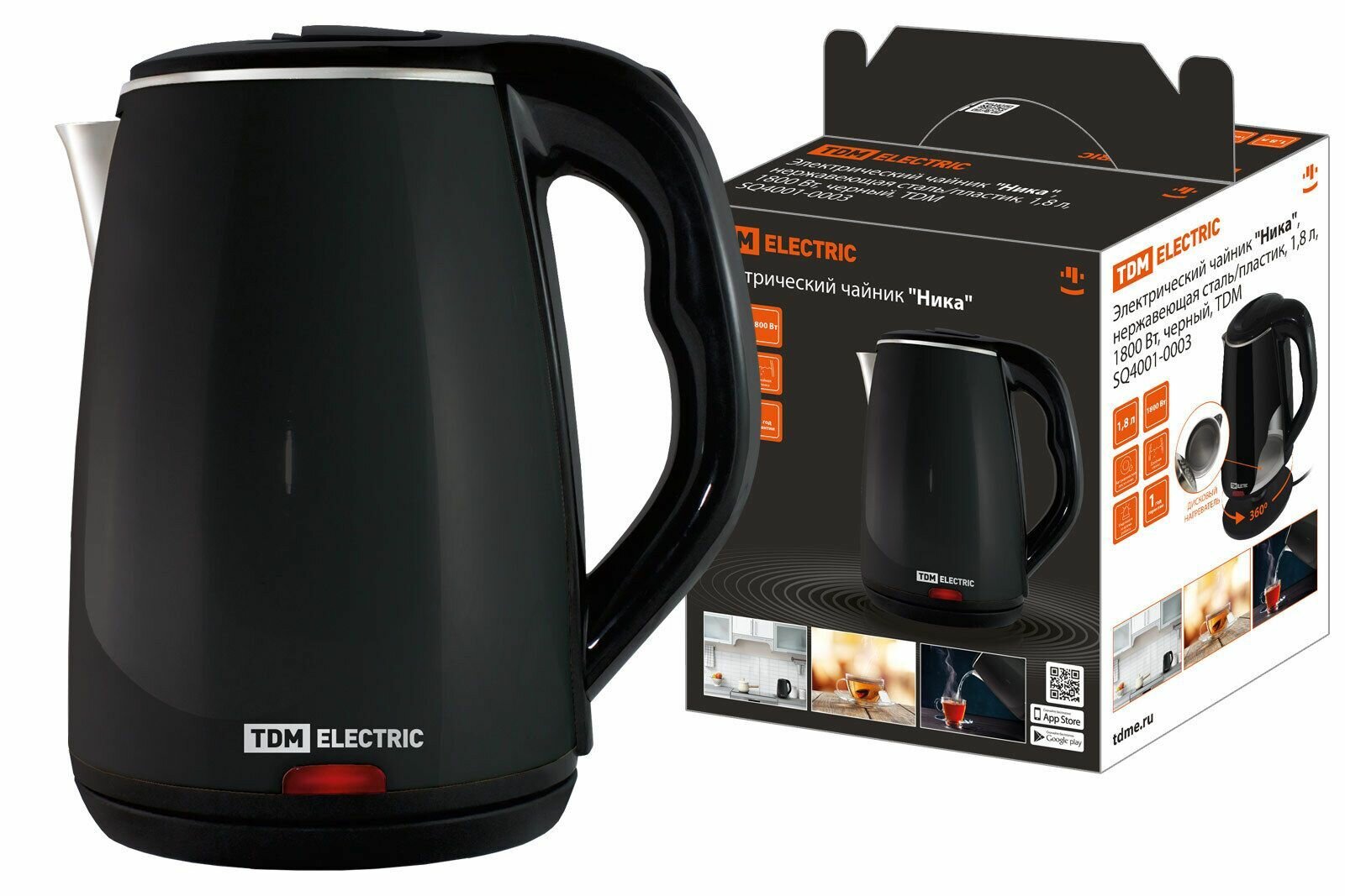 Электрический чайник "Ника", нержавеющая сталь / пластик, 1,8 л, 1800 Вт, черный, TDM