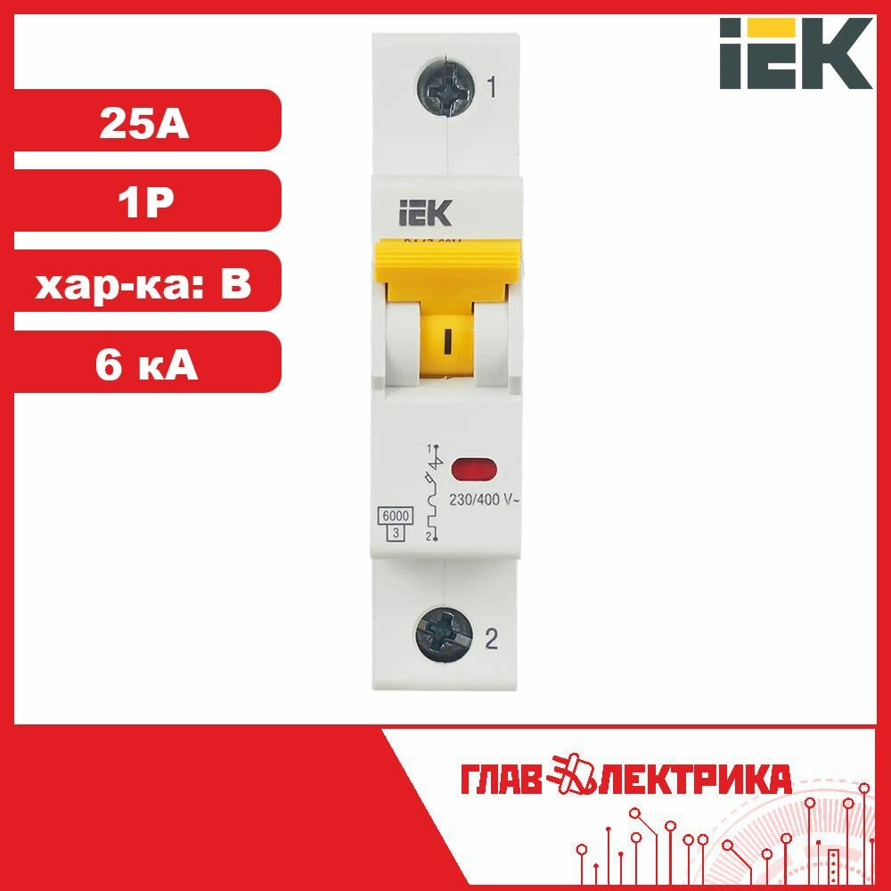 Выкл. авт. ВА47-60M 1Р 25А 6кА B, IEK MVA31-1-025-B (1 шт.)