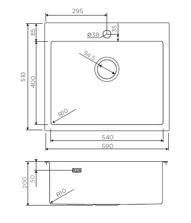 Кухонная мойка OMOIKIRI Akisame 59-GM 4973096 (590 x 510 мм), врезная, нержавеющая сталь, вороненая сталь