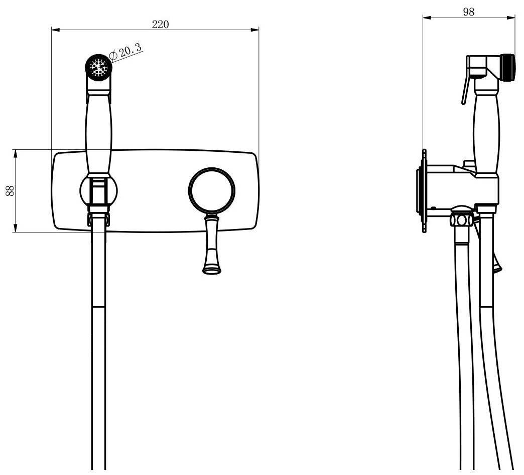 | Комплектация | гигиенический душ / крепление / скрытая часть / Смеситель / шланг |