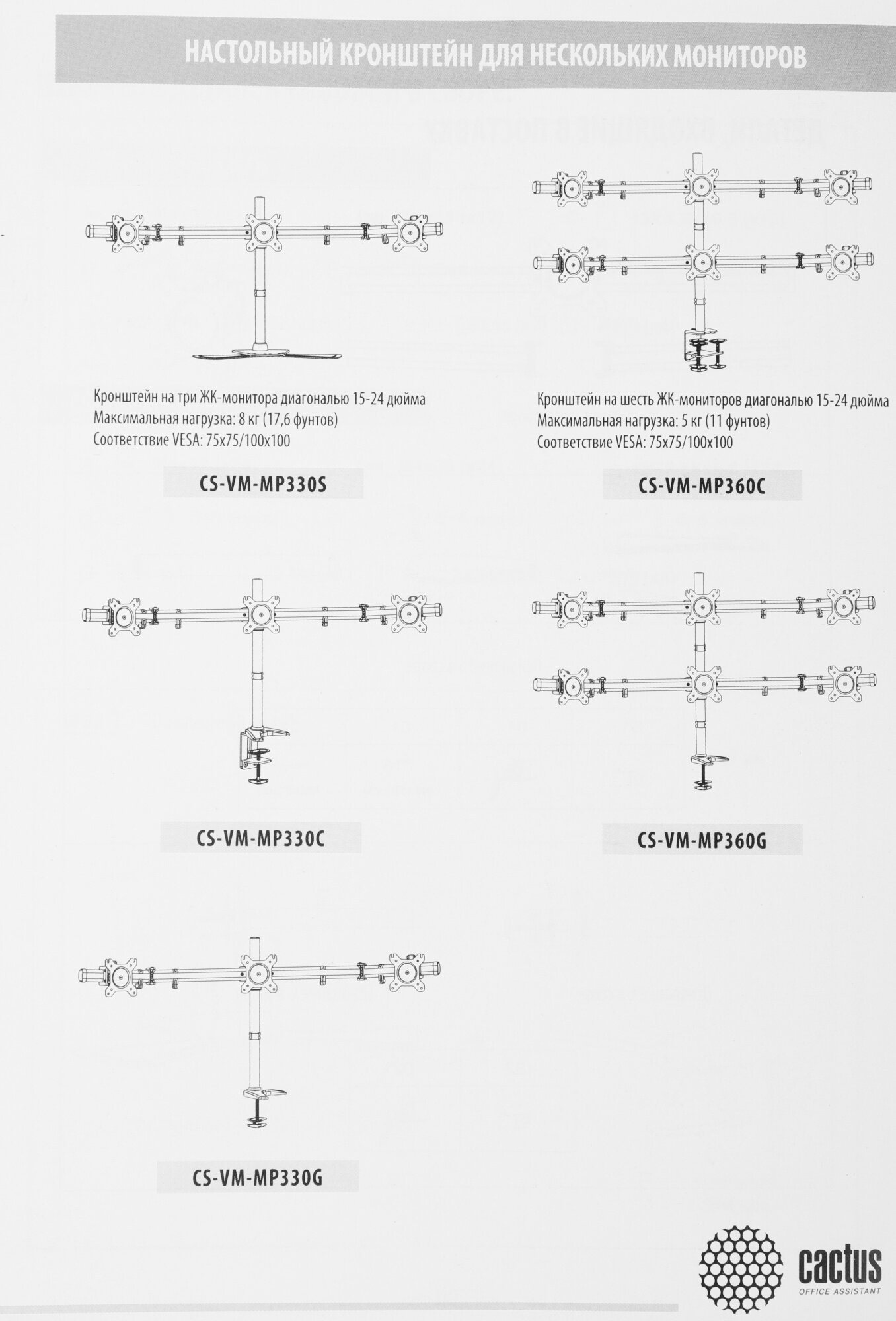Купить Кронштейн для мониторов Cactus CS-VM-MP330S-BK черный, 15"-24", настольный