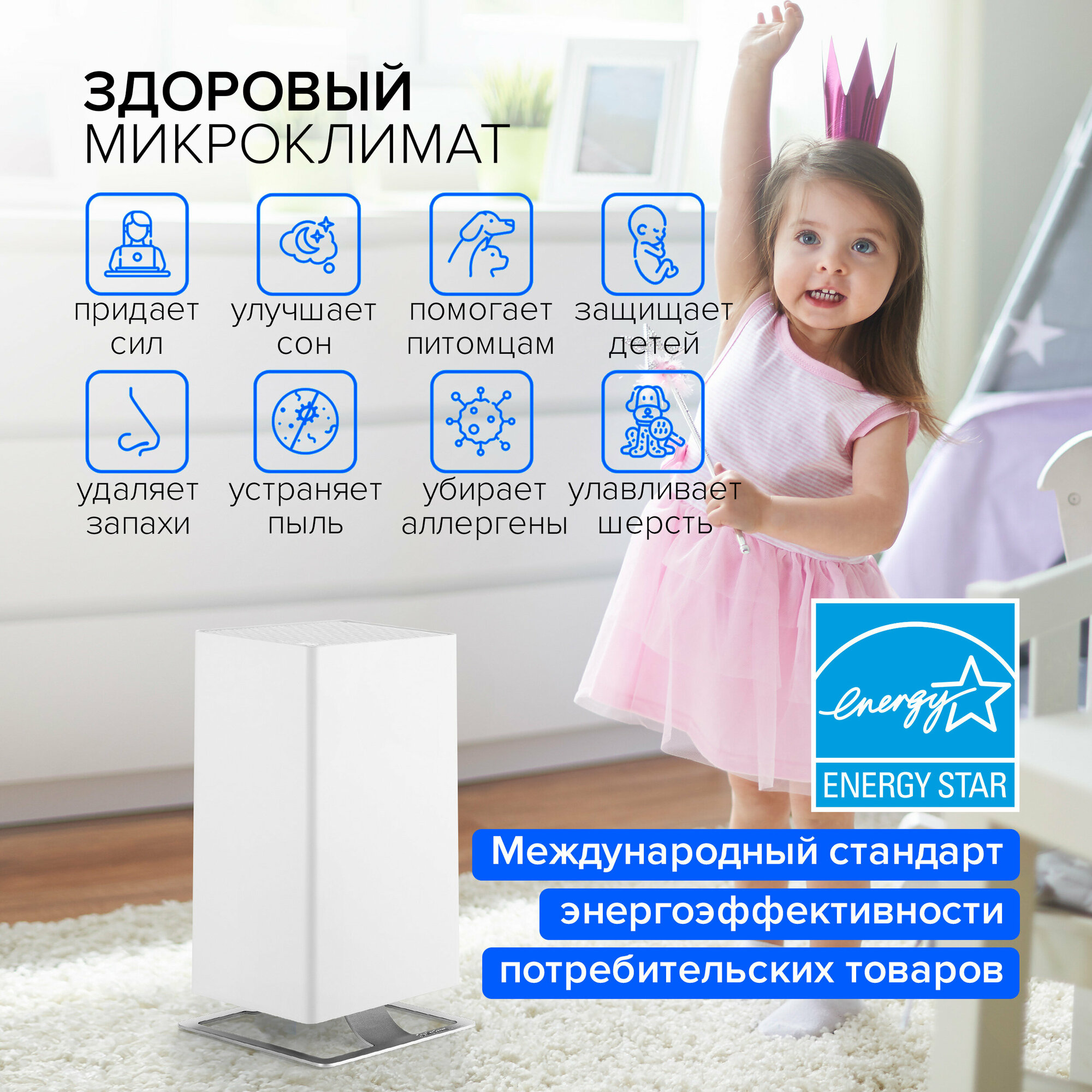 | Отзыв: | Купила по рекомендации врача, у ребенка аллергия на пылевого клеща. И за неделю использования уже был виден результат, не чихает, глаза не красные, дышится легче. С нашей задачей полностью справился. |
