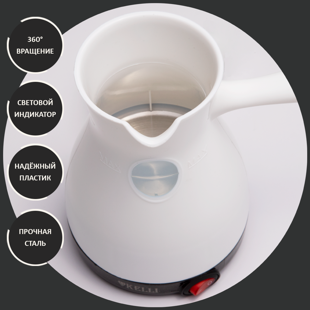 Турка электрическая KELLI KL-1445 белый на 4 чашки