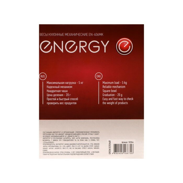 Ниже Вы можете прочитать отзывы на Energy Весы кухонные ENERGY EN-406МК, механические, до 5 кг, зелёные, ознакомится с подробными характеристиками, посмотреть интересные обзоры и фотографии на Energy Весы кухонные ENERGY EN-406МК, механические, до 5 кг, зелёные.