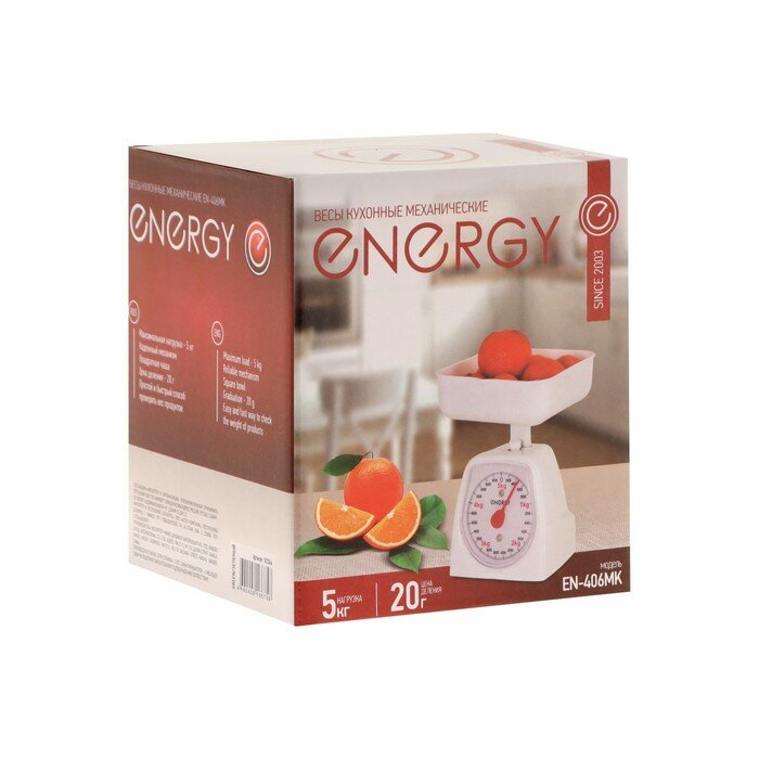 Весы кухонные механические Energy EN-406МК, до 5 кг, квадратные, белые