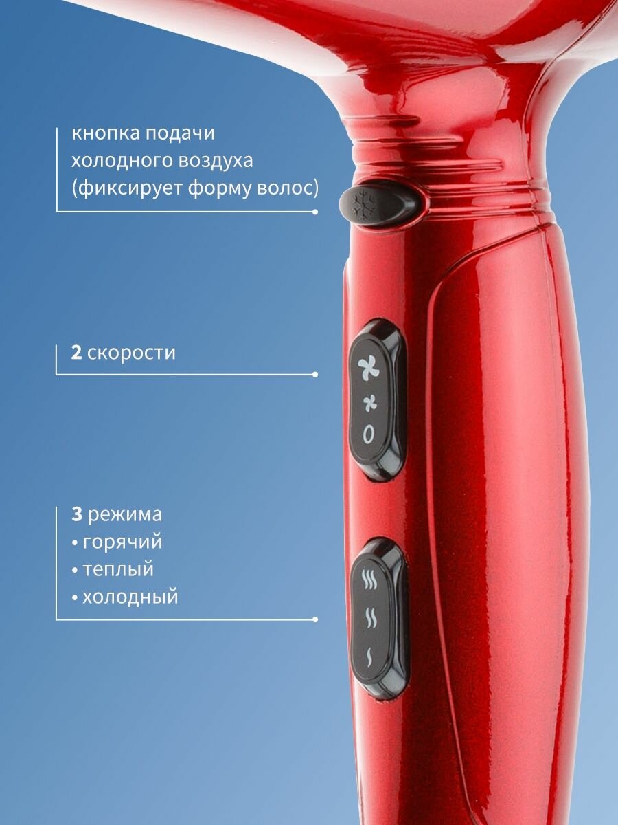 Профессиональный фен для волос красный Spectrum 03-110 Red, 2200 Вт. Dewal