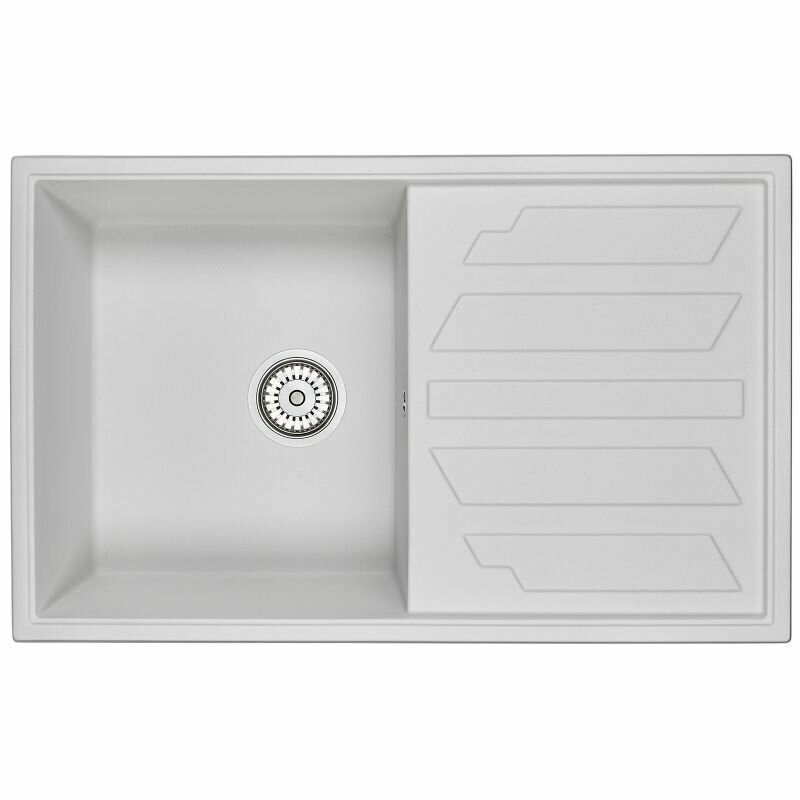 Кухонная мойка кварцевая Granula GR-8002 прямоугольная с крылом, врезная, чаша 380х445, цвет арктик (8002wh)