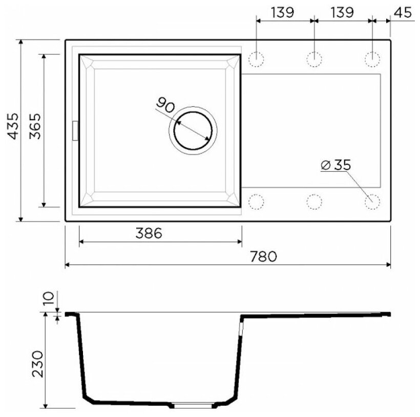 Кухонная мойка OMOIKIRI Sakaime 78-BL 78х43,5см искусственный гранит/черный