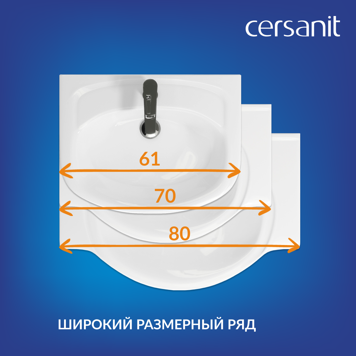 Раковина для ванной комнаты Cersanit мебельная ERICA 80 белая, Гаратния 10 лет