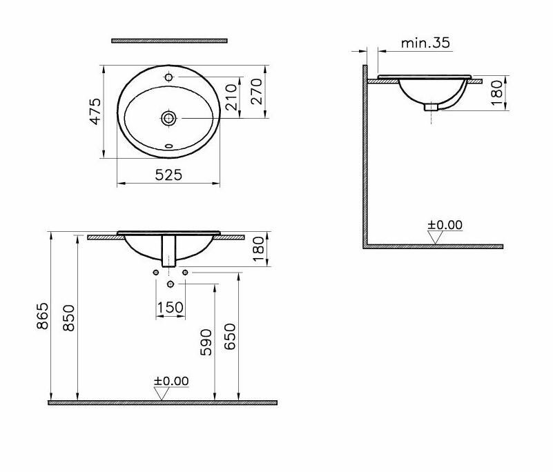 СохранитьРаковина Vitra S20 (525х475х180) встраиваемая, с отверстием под смеситель, белая 5468B003-0001 интересное: