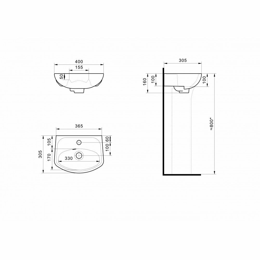 Умывальник АНИМО-40 с 1 отверстием под смеситель