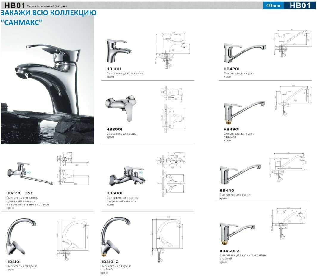 Смеситель для кухни Haiba HB4101, хром