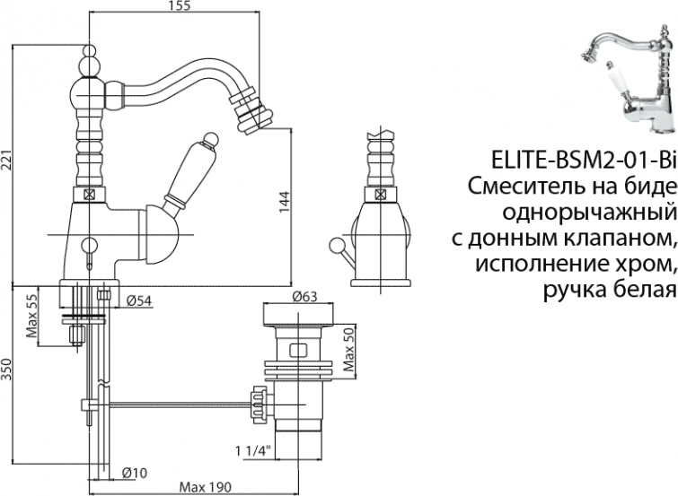 Смеситель для биде Cezares ELITE BSM2 (ELITE-BSM2-03-M)